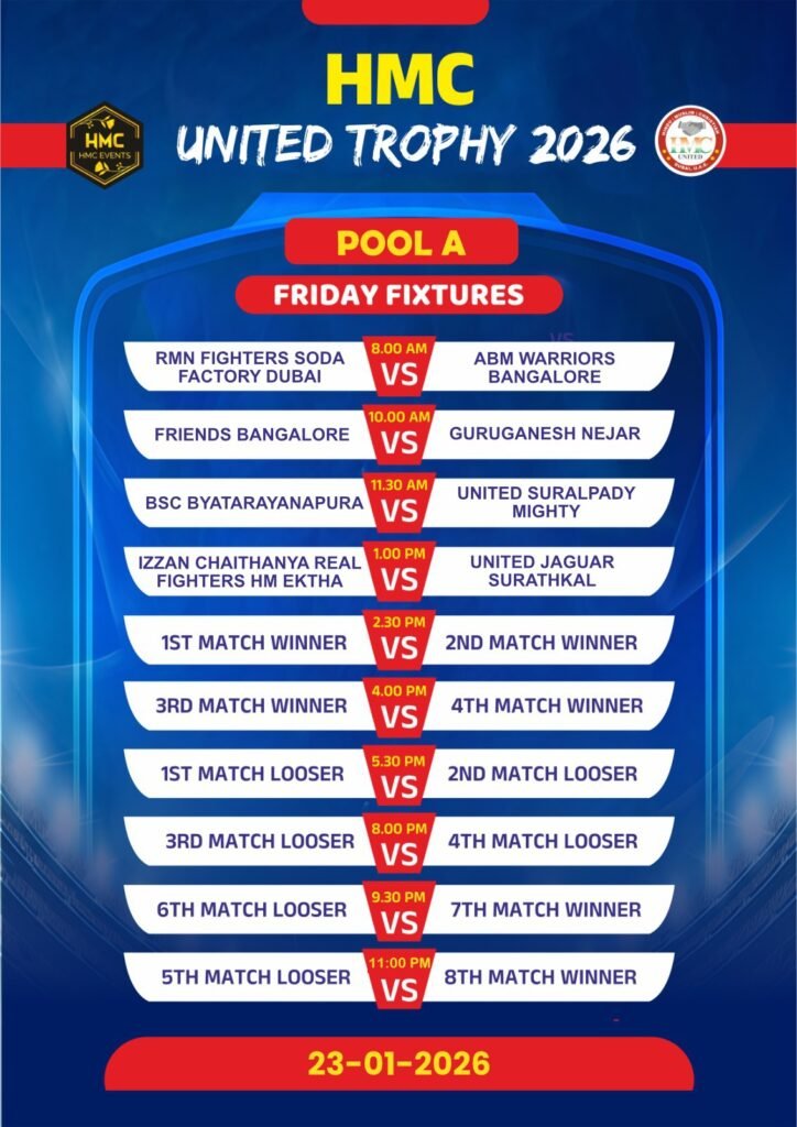 🕗 ರಾತ್ರಿ 8:00 – HMC ಯುನೈಟೆಡ್ ಟ್ರೋಫಿ 2026 ಫೈನಲ್